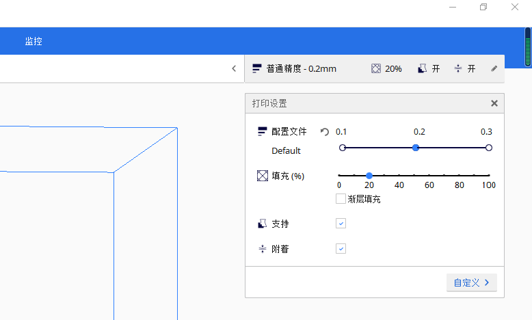 基于Marlin代碼重做了切片計算邏輯,降低切片的失誤可能性,提高了模型打印的表現。取消了支撐頂部隨模型支撐接觸面形狀進行變化,提高支撐易拆取性,同時也需要提高密度來獲得好的接觸面效果。