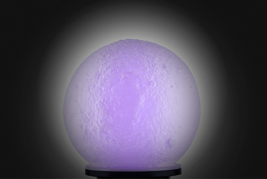 月球燈表面紋理凹凸不平,且細節設計繁復,傳統工藝無法生產制造出高逼真程度的月球燈。而3D打印工藝通過對燈罩厚薄的精準控制來改變透光率,從而展現出月球表面陰影和紋理的變化,最終成品無論從表面細膩程度還是燈罩透光率,都呈現出極為生動的效果。