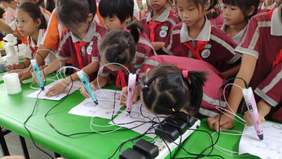 下午活動過程中,少先隊員們使用3D打印筆為自己繪制了屬于自己的手工眼鏡模型,少先隊員們認真執著完成作品,一點都不馬虎,一點一點的擠出耗材,在模型上完成眼鏡的圖形繪制,真為少先隊員們的動手手工能力表示贊贊贊。