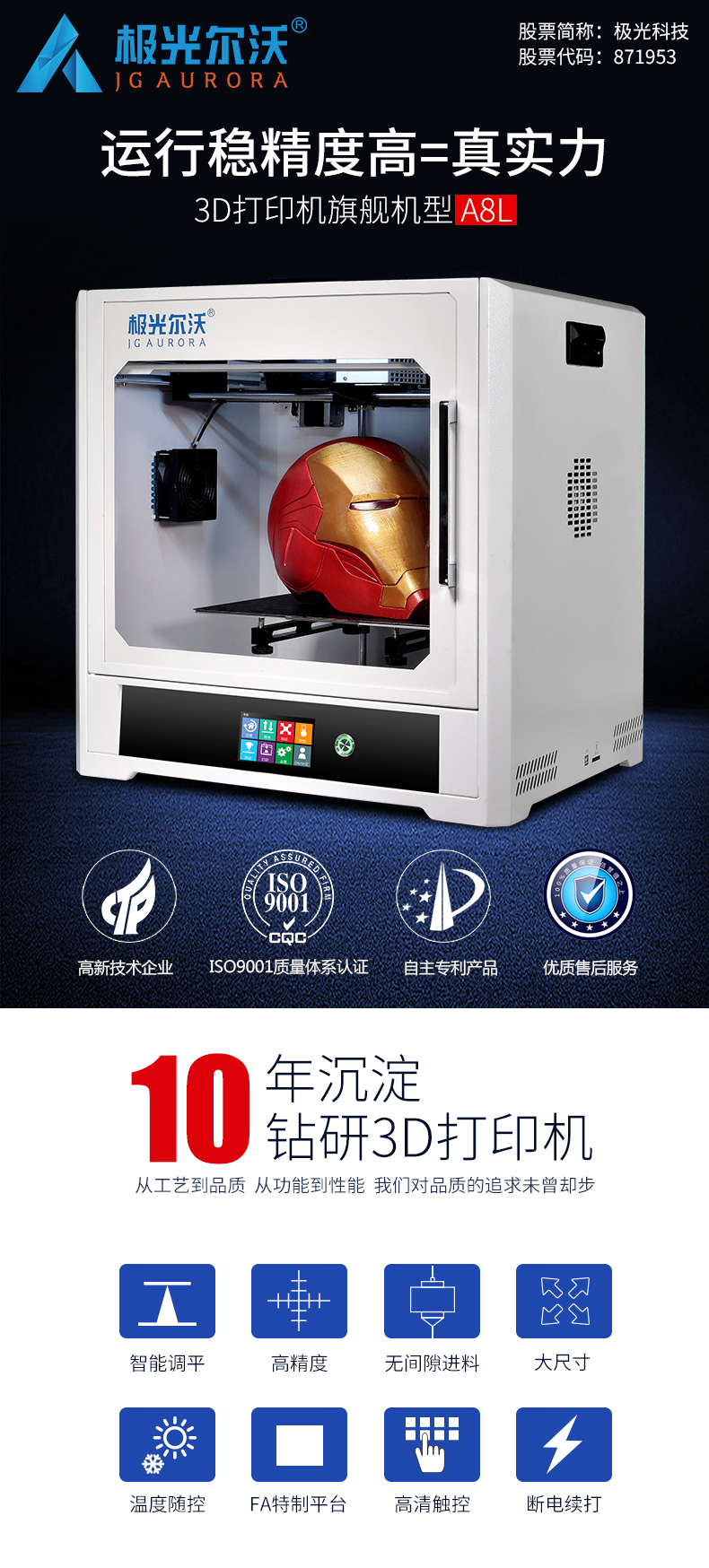 深圳市極光爾沃科技股份有限公司,中國3D打印機上市公司,由2009年英國留學(xué)創(chuàng)業(yè)人員發(fā)起創(chuàng)立的專業(yè)3D打印機“極光爾沃”