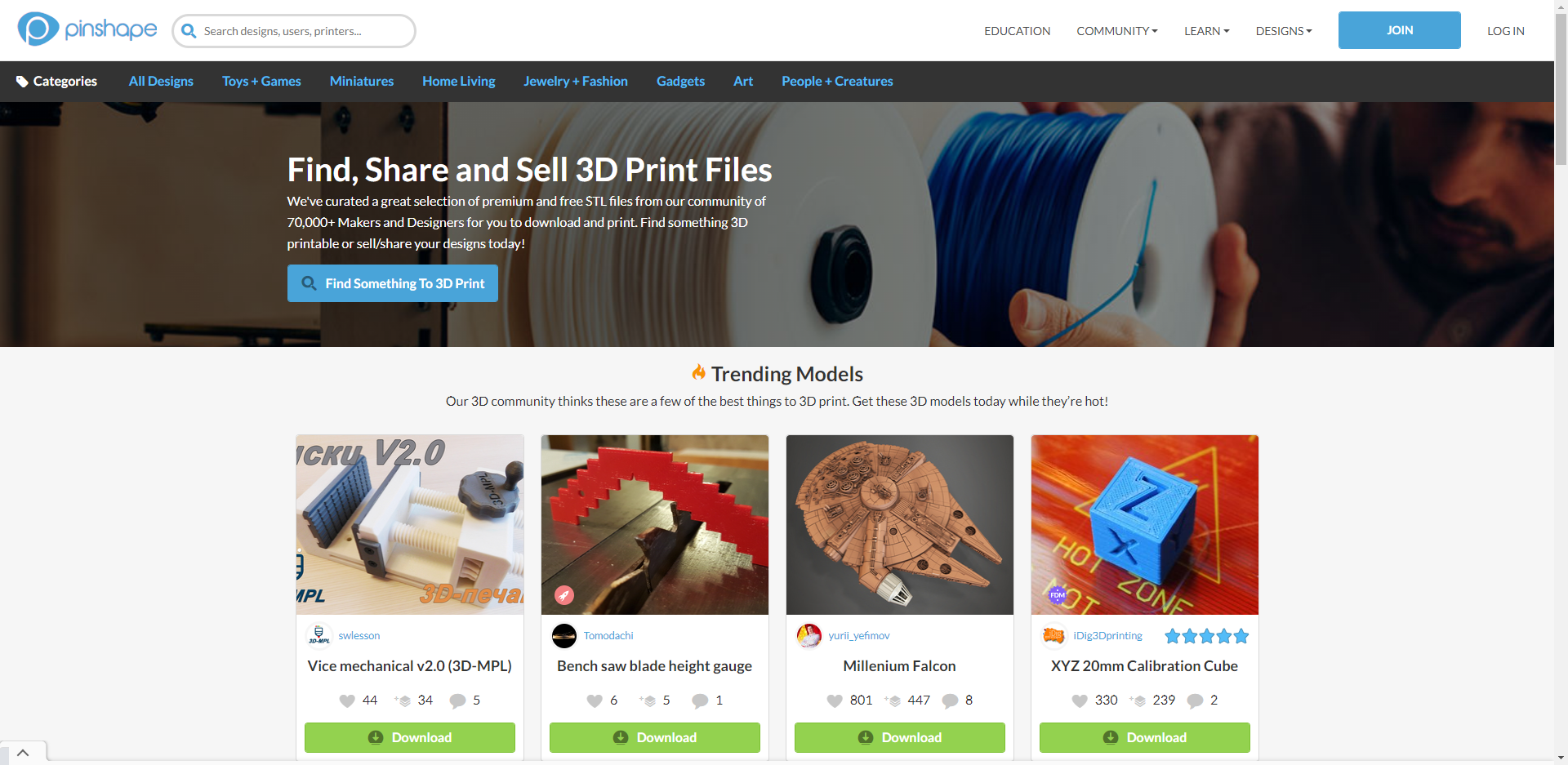 Pinshape是3D內(nèi)容世界里的另一家知名網(wǎng)站。這個3D社區(qū)市場擁有超過55,000為創(chuàng)客和3D設(shè)計師,里面既有免費(fèi)的STL文件也有需要付費(fèi)的STL文件。
