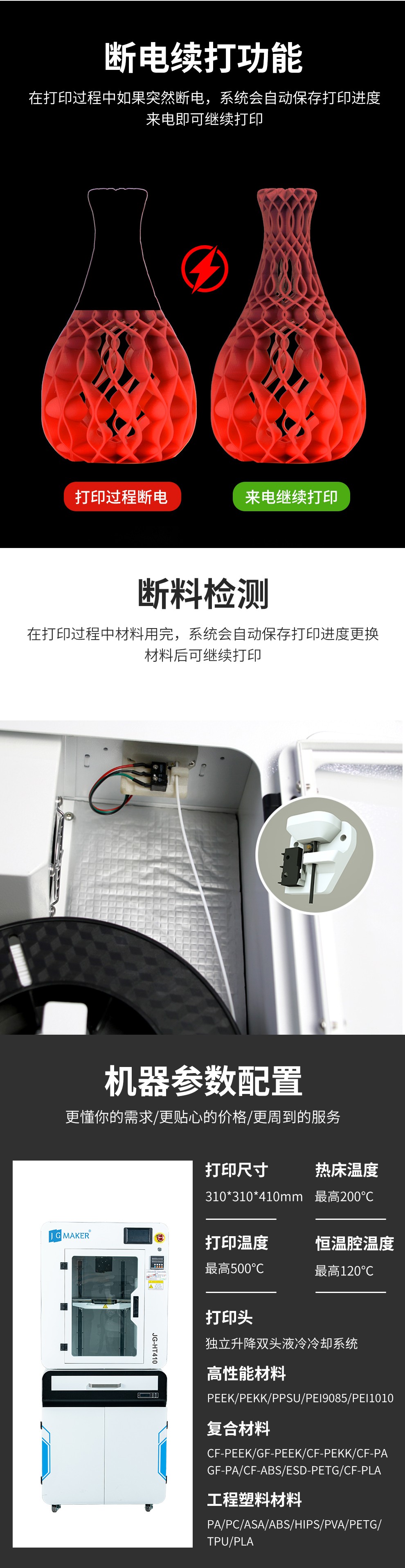 JG-HT410 工業級高溫3D打印機