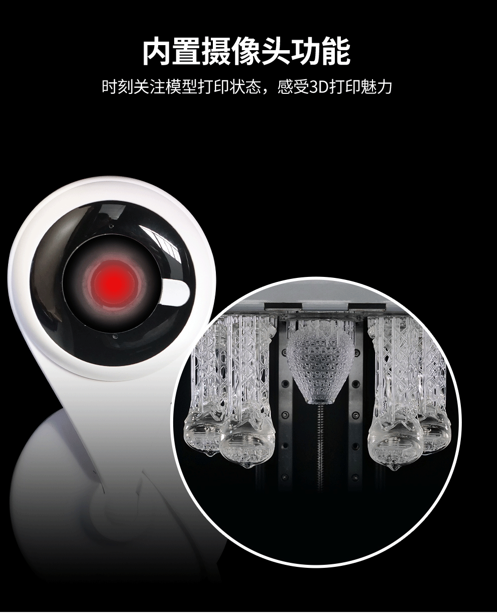 JG-L5 Pro 采用10.1寸6K透光固化屏,理論精度可高達0.045mm;增加打印、清洗、固化 三合一功能,內置攝像監控;對斷料檢測傳感器模塊做了升級,以及缺料會自動提示加料。